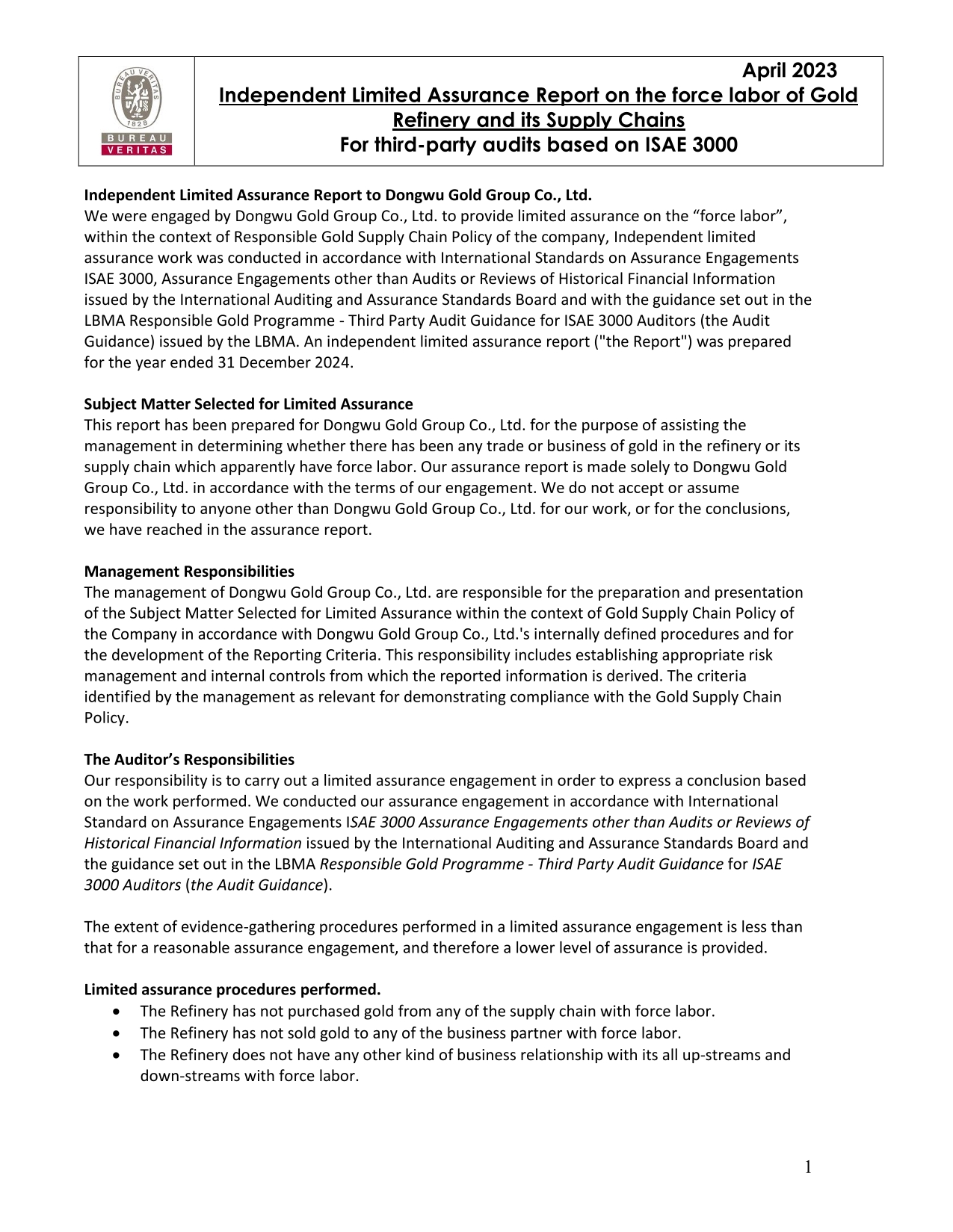 Additional Limited Assurance Report_Gold_Dongwu Gold Group Co., Ltd._China